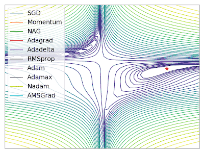 正所谓一图胜千言,Alec Radford 提供了 2 张图形象了描述了不同优化算法之间的区别