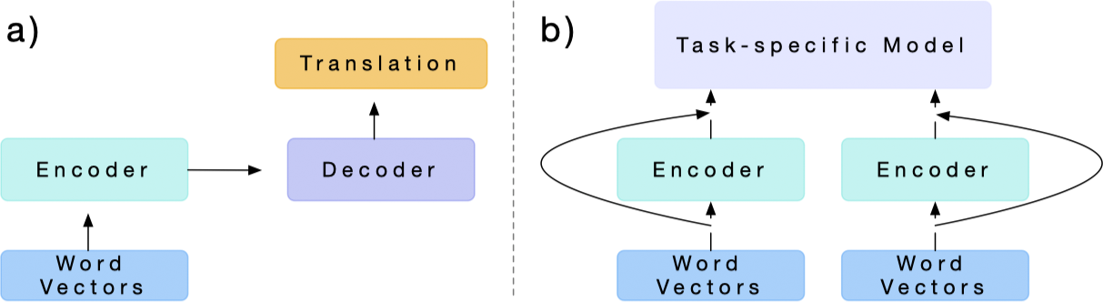McCann, B., Bradbury, J., Xiong, C., & Socher, R. (2017). Learned in translation: Contextualized word vectors. In Advances in Neural Information Processing Systems (pp. 6294-6305). ↩︎ ↩︎