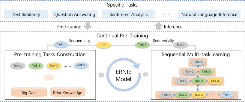 Sun, Y., Wang, S., Li, Y., Feng, S., Tian, H., Wu, H., & Wang, H. (2019). Ernie 2.0: A continual pre-training framework for language understanding. arXiv preprint arXiv:1907.12412. ↩︎ ↩︎