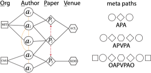 其中,APA 表示一篇论文的共同作者,APVPA 表示两个作者在同一个地方发表过论文。