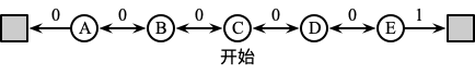 TD 和 MC 方法都能渐进地收敛于正确的预测,但两种方法谁收敛的更快,目前暂时未能证明。但在如下的随机任务上,TD 方法通常比常量 $\alpha$ MC 方法收敛得更快。假设如下 MRP 所有阶段都同中心 C 开始,每个时刻以相同的概率向左或向右移动一个状态。幕终止于最左侧或最右侧,终止于最右侧时有 +1 的收益,除此之外收益均为零。