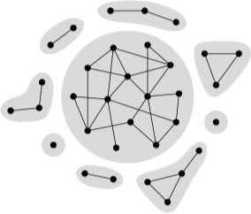 在无向网络中,一个典型的现象是很多网络都有一个分支,该分支占据了网络的绝大部分,而剩余部分则被划分为大量的小分支,这些小分支之间彼此并不相连。如下图所示: