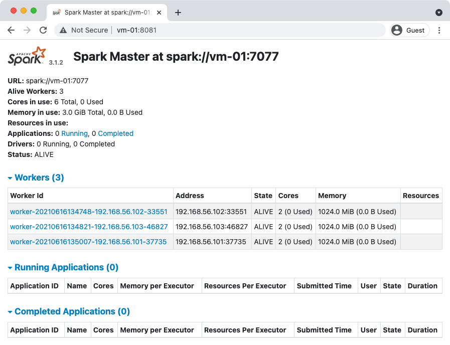 通过 http://vm-01:8081 可以进入 Spark Web 页面: