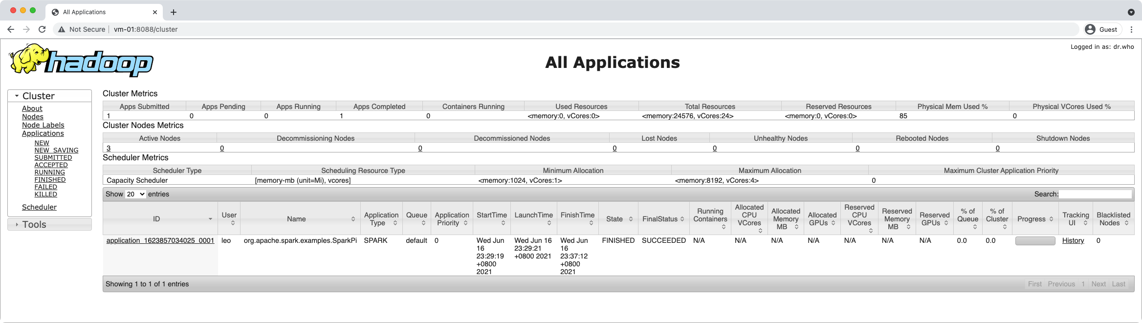本文以 Spark on YARN 模式介绍 Spark 集群的搭建。