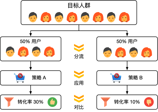 一个简单的 A/B 测试流程如下: