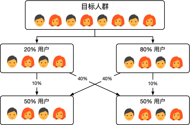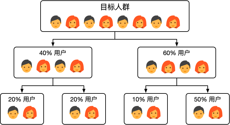 - 对目标人群进行随机划分,以进行有效的独立随机实验。