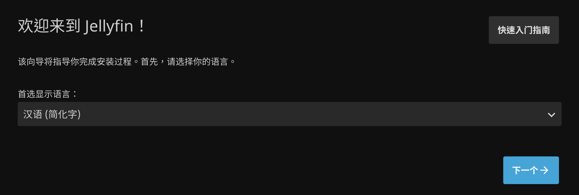 通过 http://192.168.5.1:8096 进入 Jellyfin,首选显示语言 选择 汉语(简化字):