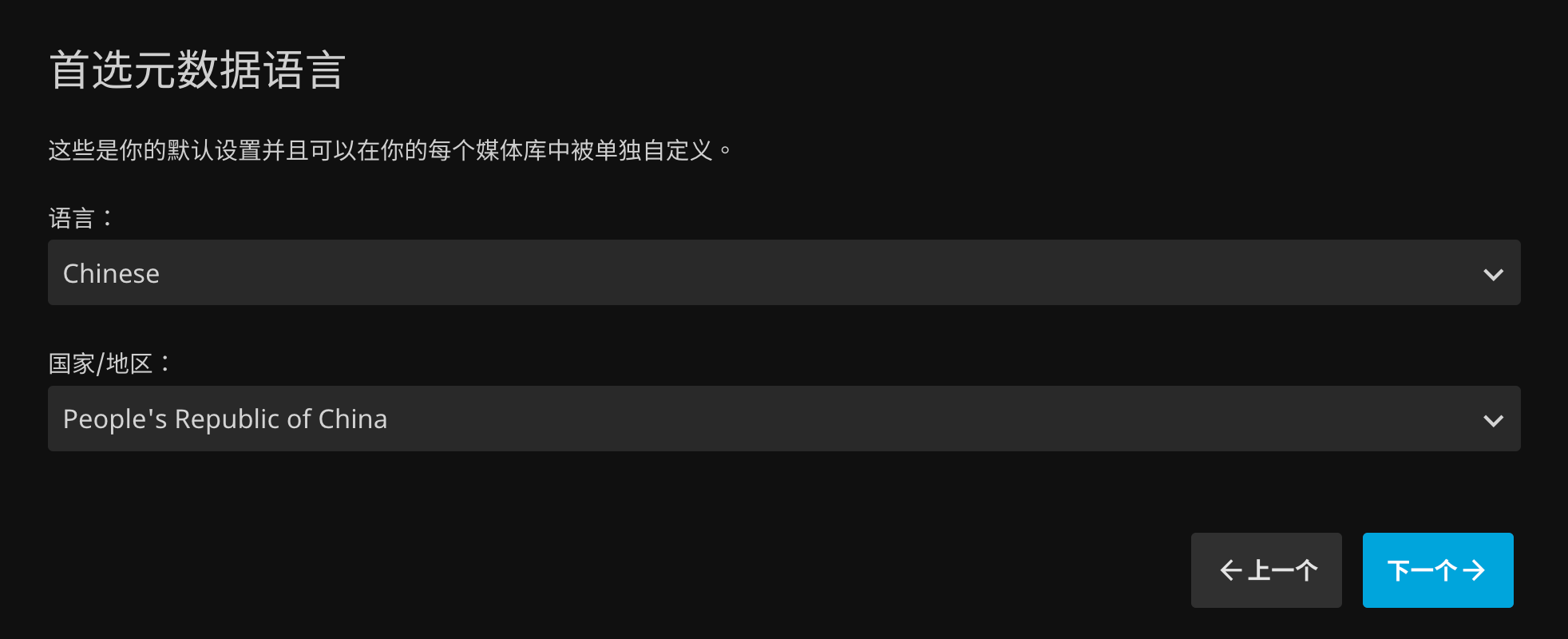 单击 下一个,设置首选元数据语言: