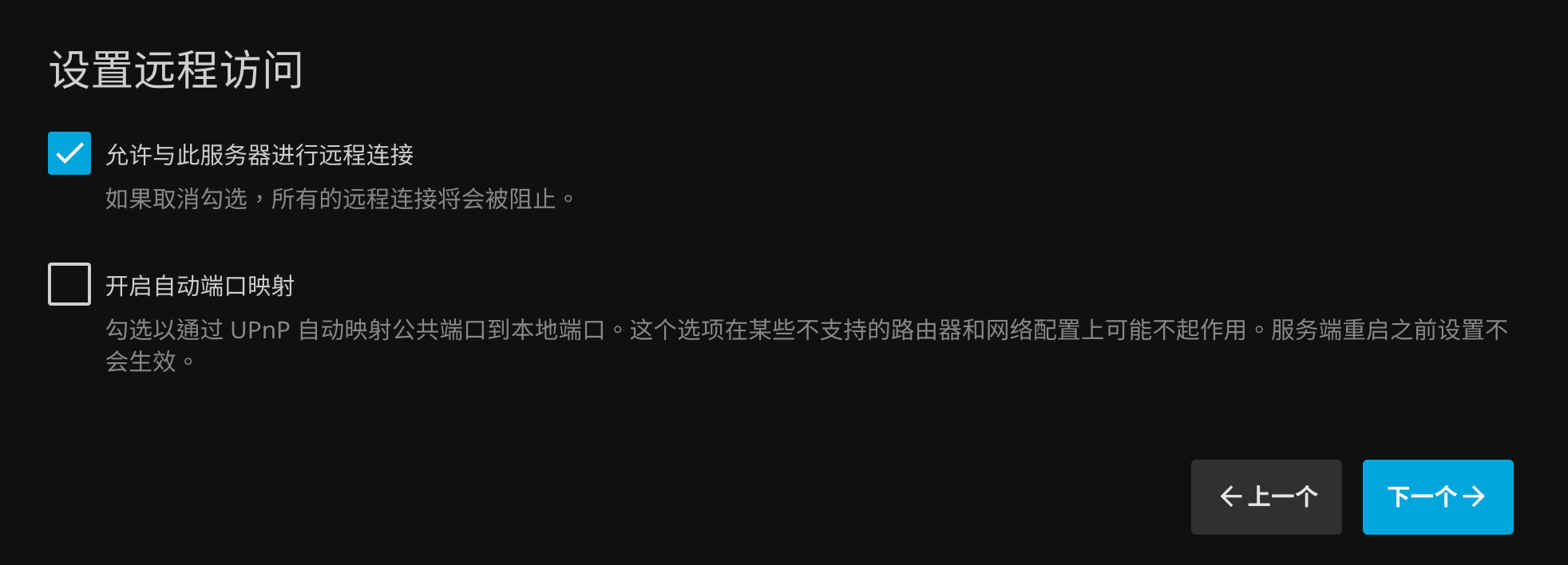 单击 下一个,设置远程访问: