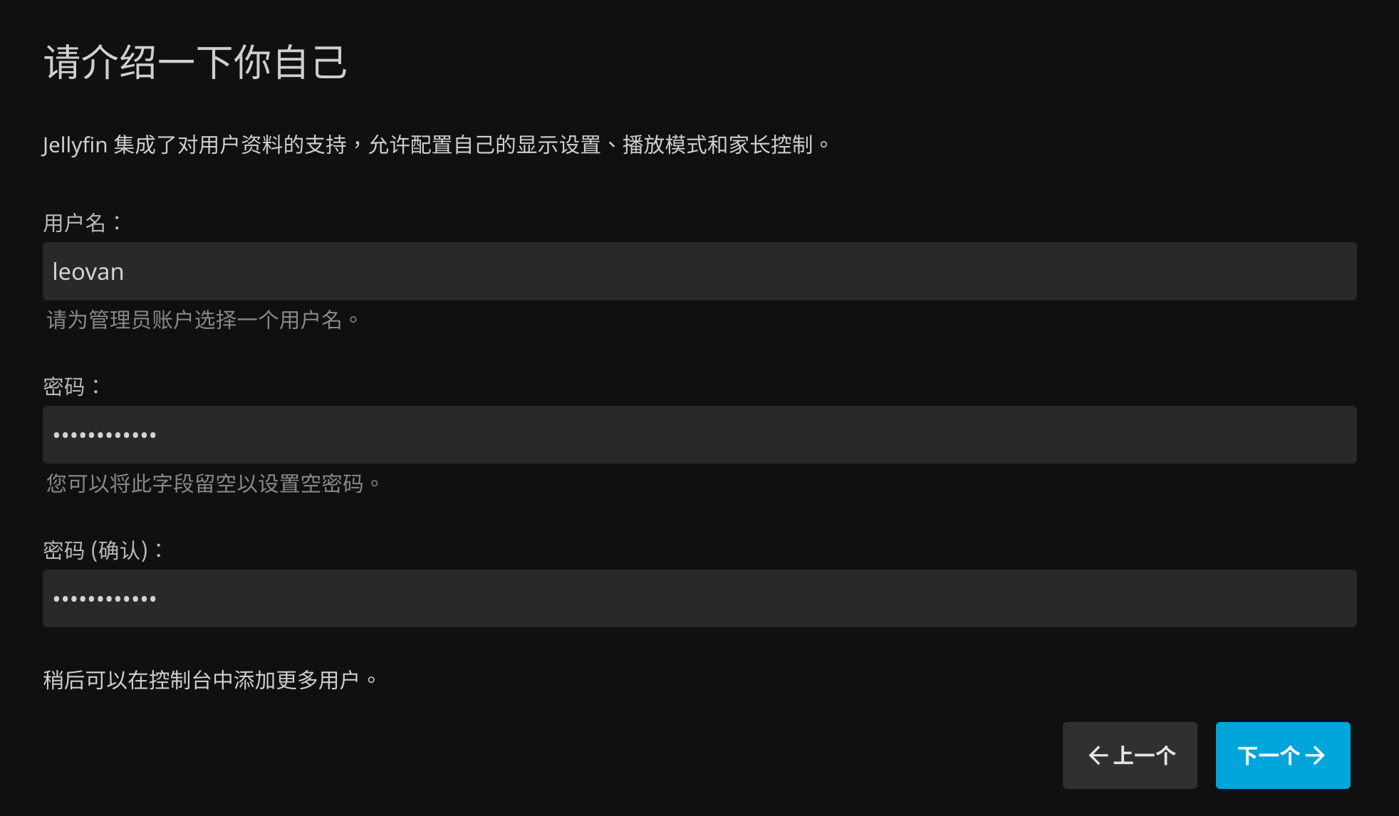 单击 下一个,根据个人情况设置 用户名 和 密码: