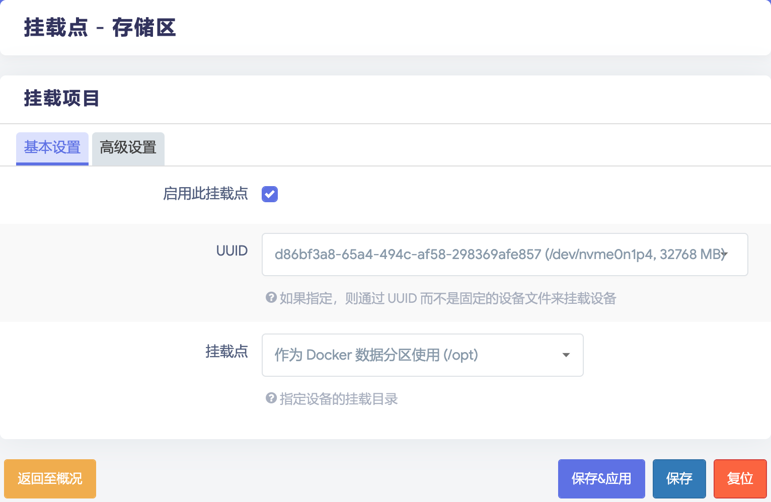 以上完成后,进入 OpenWrt 管理后台,在 系统 > 挂载点 菜单的 挂载点 处,单击 添加 按钮添加挂载点,将 /dev/nvme0n1p3 挂载为 /overlay,将 /dev/nvme0n1p4 挂载为 /opt,将 /dev/nvme0n1p5 挂载为 /data: