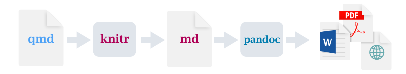 Quarto 的工作流程同 R Markdown 类似,如下图所示: